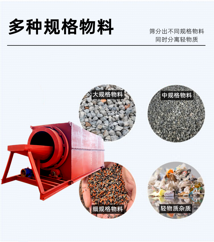 主要功能是篩分不同規格的物料同時風選出垃圾中的碎木屑、塑料片、碎布、織物、橡膠等輕物雜質。結構簡單,維修方便,分離效果好;在結構上采用內循環風設計,污染小;雙風機設計,風力更強勁,風功采用變頻電機,風力可調,更顯節能,可控性高。